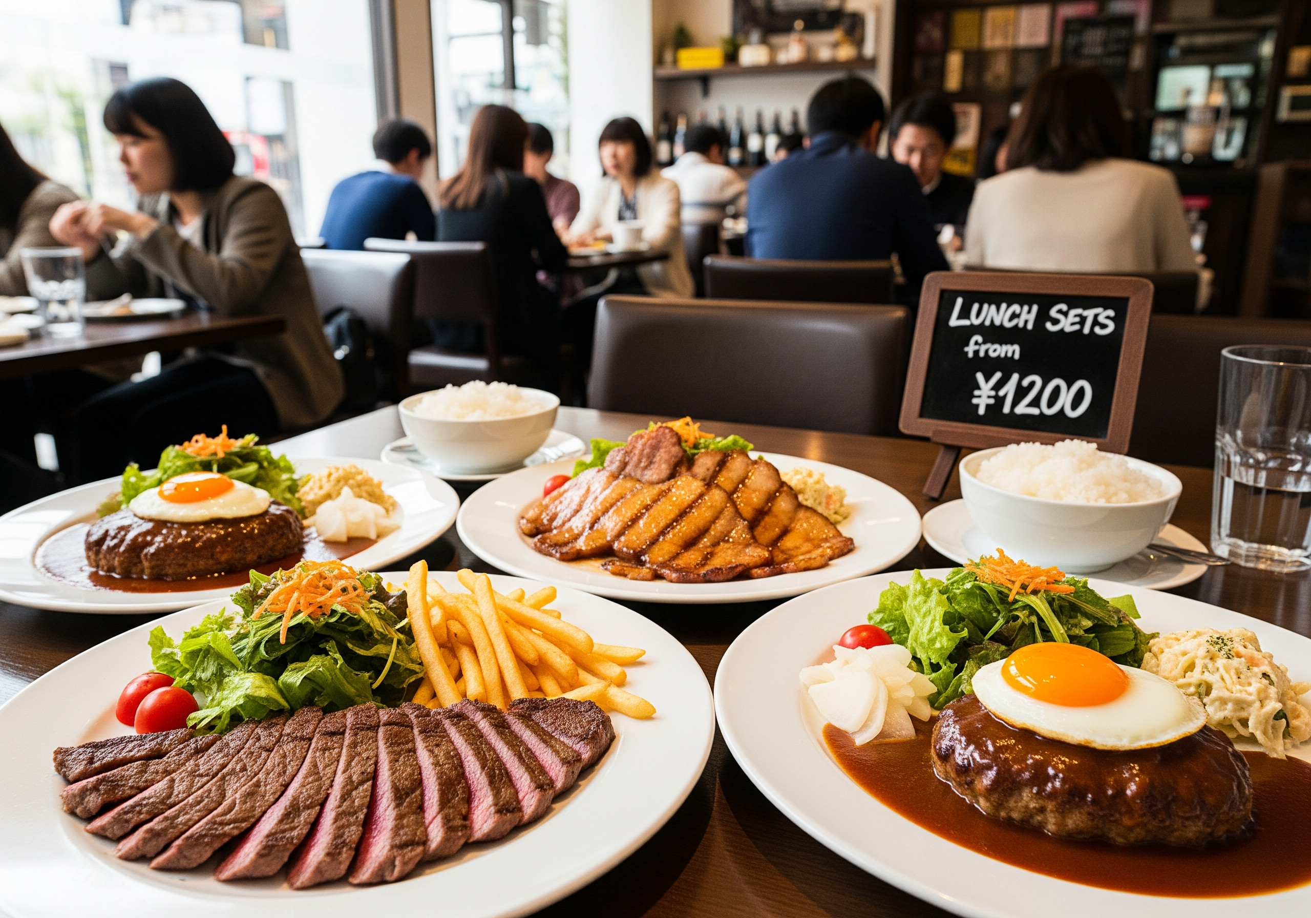 ランチタイムに並ぶ価値があるのは、ボリューム・味・価格の三拍子がそろった店です。学生や会社員に人気の焼肉定食から、ステーキ・ハンバーグ専門店まで、バリエーションも多彩です。